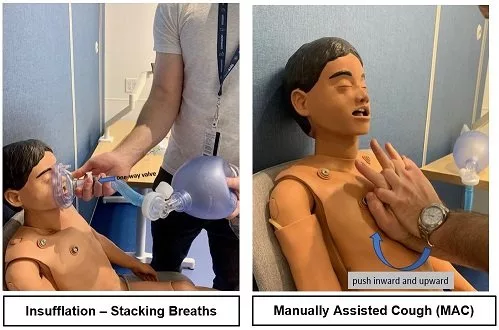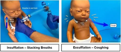 LVR is a manual technique that uses a resuscitation bag with a one-way valve to deliver repeated volumes of air to expand the lungs. This can simulate a strong cough, helping children to effectively clear airway secretions. It is often prescribed with similar frequency as CoughAssist (e.g., twice or three times daily), and is ideally performed before meals and at bedtime.