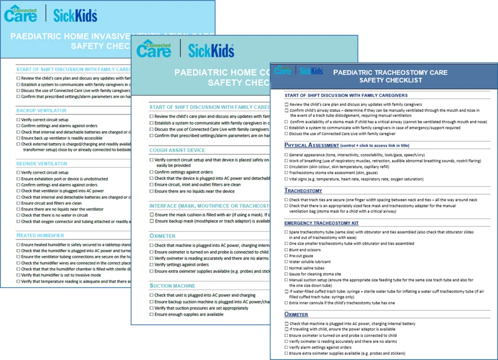 Children using respiratory equipment require highly vigilant and skilled caregiving 24/7. Safety checklists are a helpful tool for all providers, family caregivers and home care nurses alike, offering a standardized approach to identify and address possible patient safety issues and promotes readiness for an emergency.